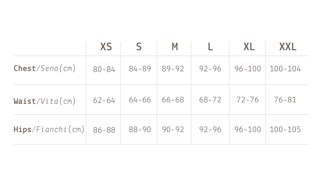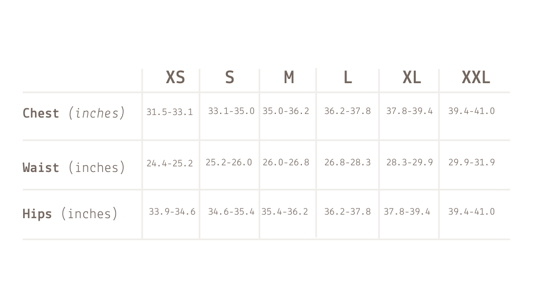 Below is the size guide I use as a reference when creating patterns. However, I believe each body is uniquely beautiful, so a standard size chart may not always be the perfect match.